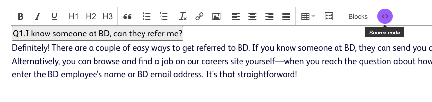 Additionally, code snippets are used as a way to add specific html into your content editor that is either difficult or impossible to achieve without editing the actual source code.